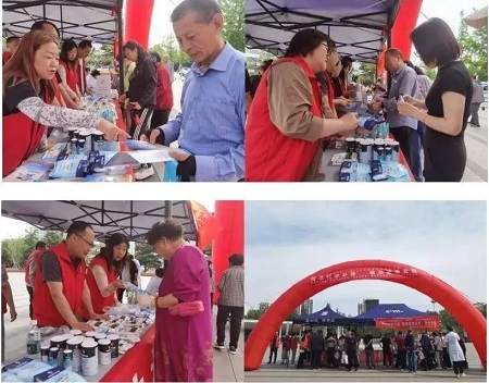 活动现场,我公司通过悬挂宣传条幅、放置宣传展架、分发宣传彩页等方式,积极向来往市民科普碘缺乏病知识及食盐加碘基本政策,为他们讲解补碘作用及如何选择碘盐。