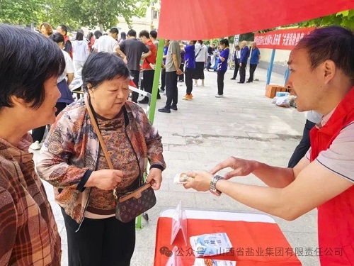 此外,党员志愿者着重向居民介绍晋盐低钠食盐的优点,帮助居民了解低钠健康饮食的重要性。并现场向居民赠送低钠盐和定量盐勺,指导居民如何辨别、选择安全放心食盐。耐心叮嘱现场老年人,若饮食中钠盐含量过高会引起高血压,增加心脏病和中风的发生风险,因此,要清淡少盐合理膳食,提高防病治病和自我保护意识,养成良好的饮食习惯。