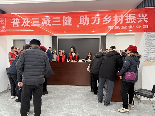 为深入推进“我为群众办实事”实践活动走深走实,切实发挥党员先锋模范作用,关爱基层群众健康,普及科学用盐知识,11月26日,阳泉盐业党支部走进阳泉市平定县鹊山聚兴社区开展“普及三减三健 助力乡村振兴”主题党日活动,将健康关怀与便民服务精准送到群众身边。
